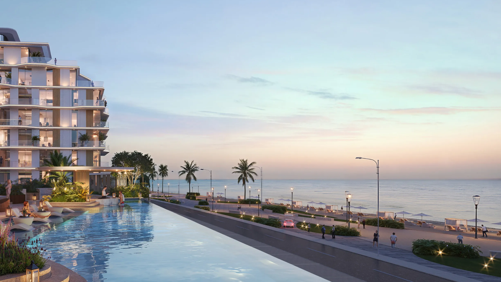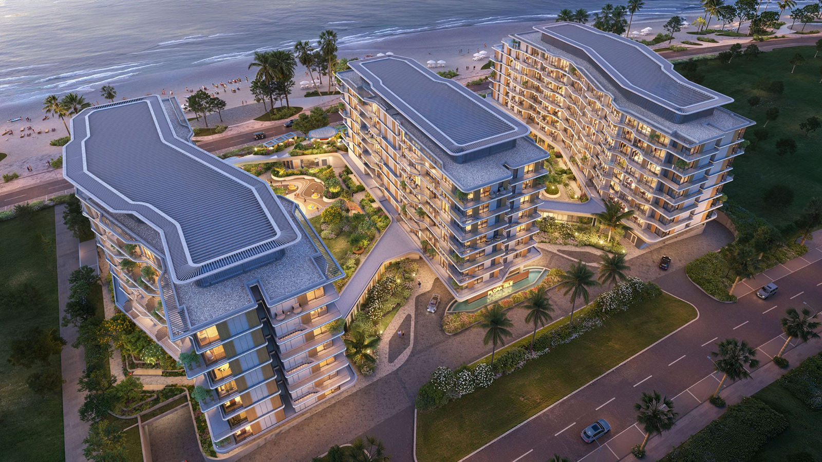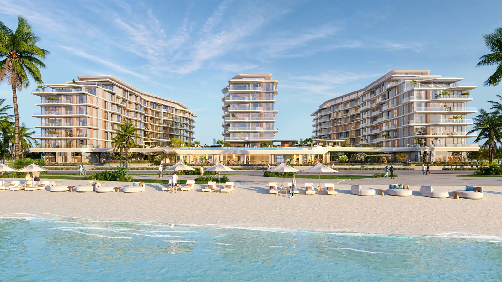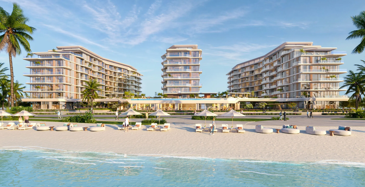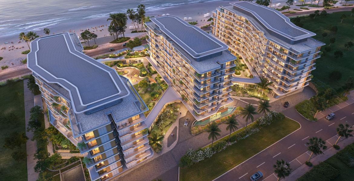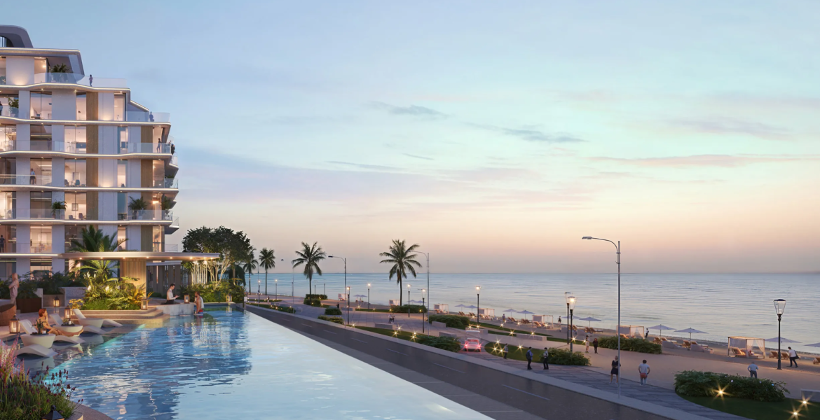 The development features a premium collection of 1, 2 & 3-bedroom beachfront apartments, thoughtfully designed with spacious floor plans, refined interiors, and generous balconies. Large floor-to-ceiling windows bring abundant natural light into the residences while offering beautiful views of the waterfront and landscaped surroundings. Residents can enjoy a variety of lifestyle amenities such as swimming pools, leisure spaces, and convenient beach access, creating a relaxed resort-style atmosphere for everyday living.