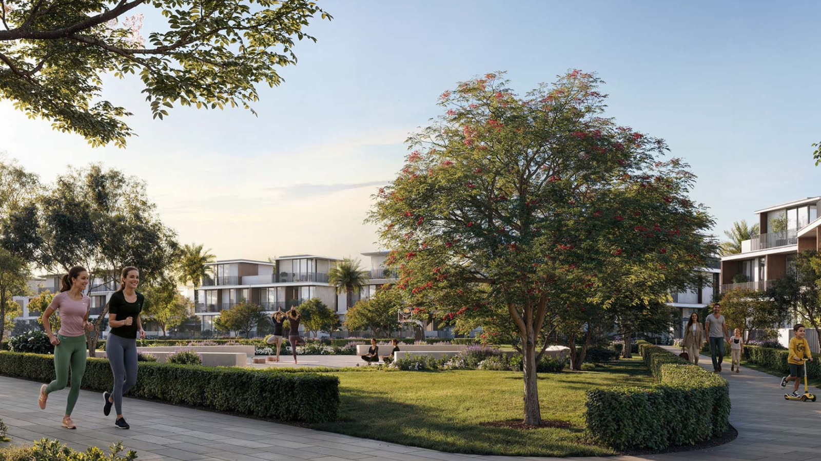 • Swimming pools for adults and children • Fully equipped fitness center and gym • Landscaped parks and walking trails • Polo and equestrian facilities • Children’s play areas • Sports courts and outdoor recreation zones • Cycling and jogging tracks • Retail outlets and cafés within the community
