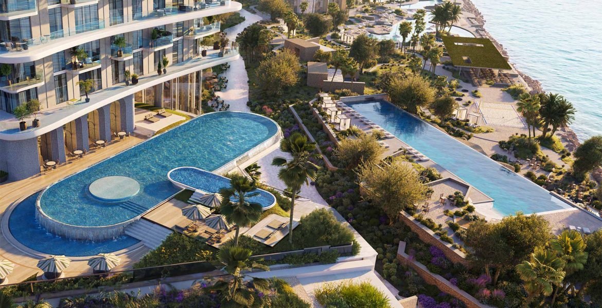 Residents will enjoy access to world-class facilities, including a serene palm grove, indoor and outdoor lounge areas, swimming pools, a BBQ zone, and an open bar area.